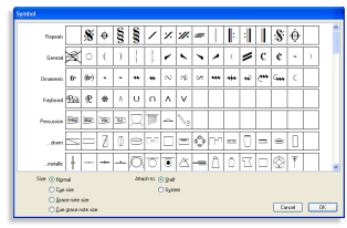 Musikfonts und SymboleDie Standard-Musikschriftarten von Sibelius, Opus und Helsinki, produzieren ein Notensatzbild von außerordentlich hoher Qualität. Zum Lieferumfang gehören auch alternative Notenköpfe, die den Entwurfstandards der US-amerikanischen Musikverlage entspricht. Ebenfalls enthalten ist Inkpen2, eine Schriftart, die handschriftliches Erscheinungsbild von Noten und Text simuliert (weitere informationen). Aber Sie sind nicht auf die Verwendung unserer Schriftarten beschränkt. Sibelius ist kompatibel mit allen bekannten Musikfonts, wie etwa. Petrucci, Jazz, Susato, Sonata, Tamburo und Ghent. Sie können sogar unter Verwendung einer beliebigen Kombination aus Zeichen einer beliebigen Mischung aller verfügbaren Zeichensätze Ihre eigenen Symbole entwerfen. |